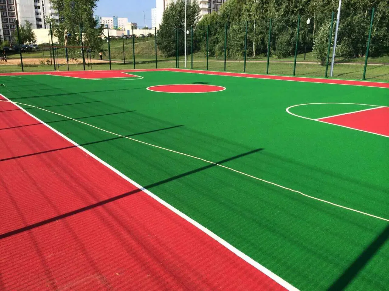 Это современное решение, которое сочетает в себе долговечность, практичность и эстетику. Срок службы такого покрытия может достигать 10–15 лет и даже больше, в зависимости от интенсивности эксплуатации и условий использования. Это возможно благодаря уникальным свойствам материала: резиновая крошка, из которой изготавливается покрытие, обладает высокой устойчивостью к износу, перепадам температур, влаге и ультрафиолетовому излучению. Она не трескается, не выцветает и сохраняет свои свойства даже при интенсивных нагрузках.